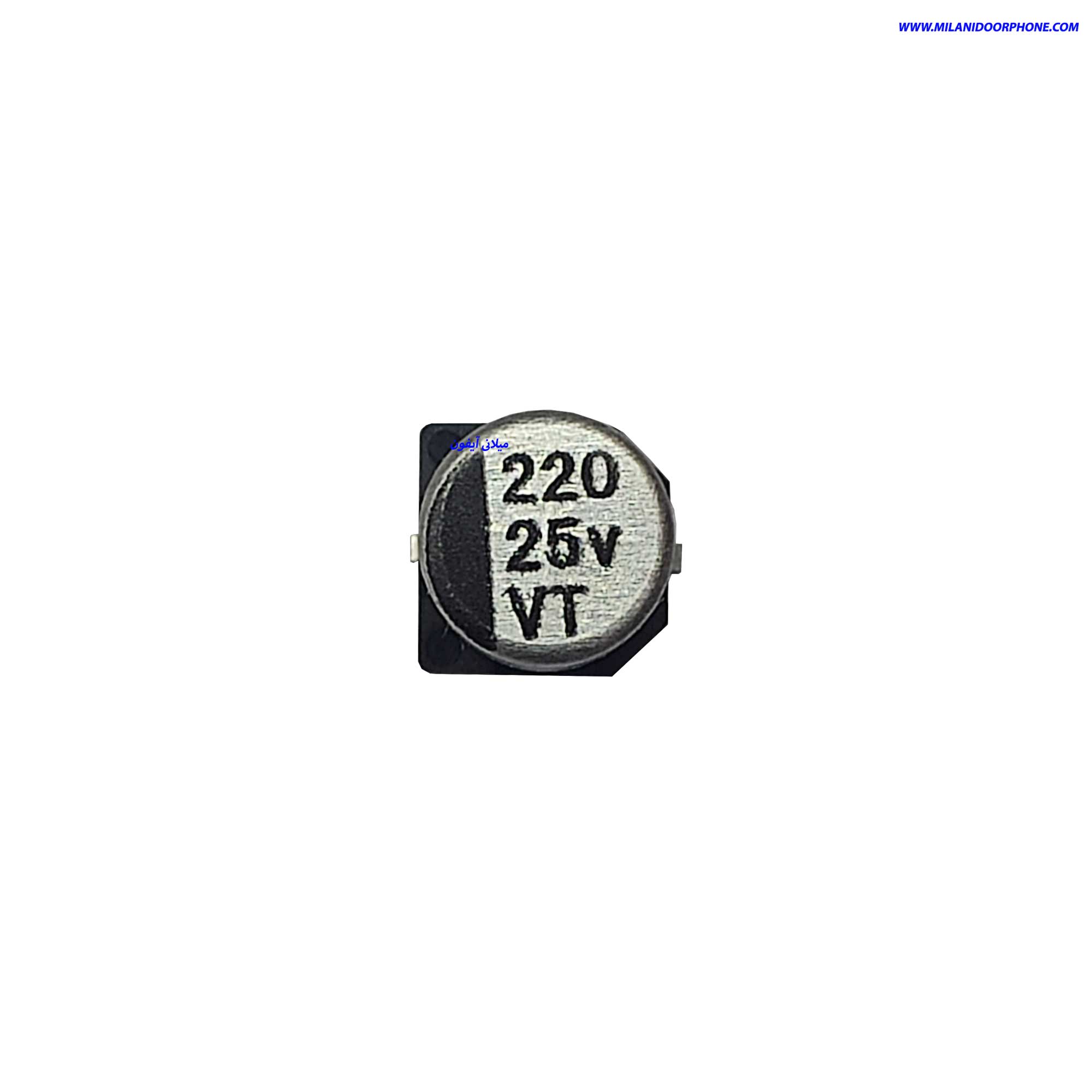 خازن الکترولیت 220U 25V SMD(محصول در پک ۲۰ عددی می باشد)
